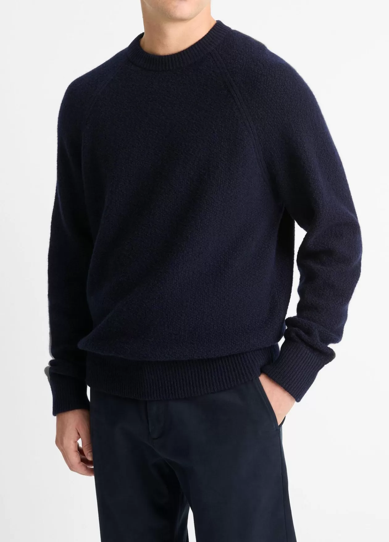 Product Details and CareFashioned with raglan sleeves, this textural crew neck sweater is micro-bouclé knit from a sump…