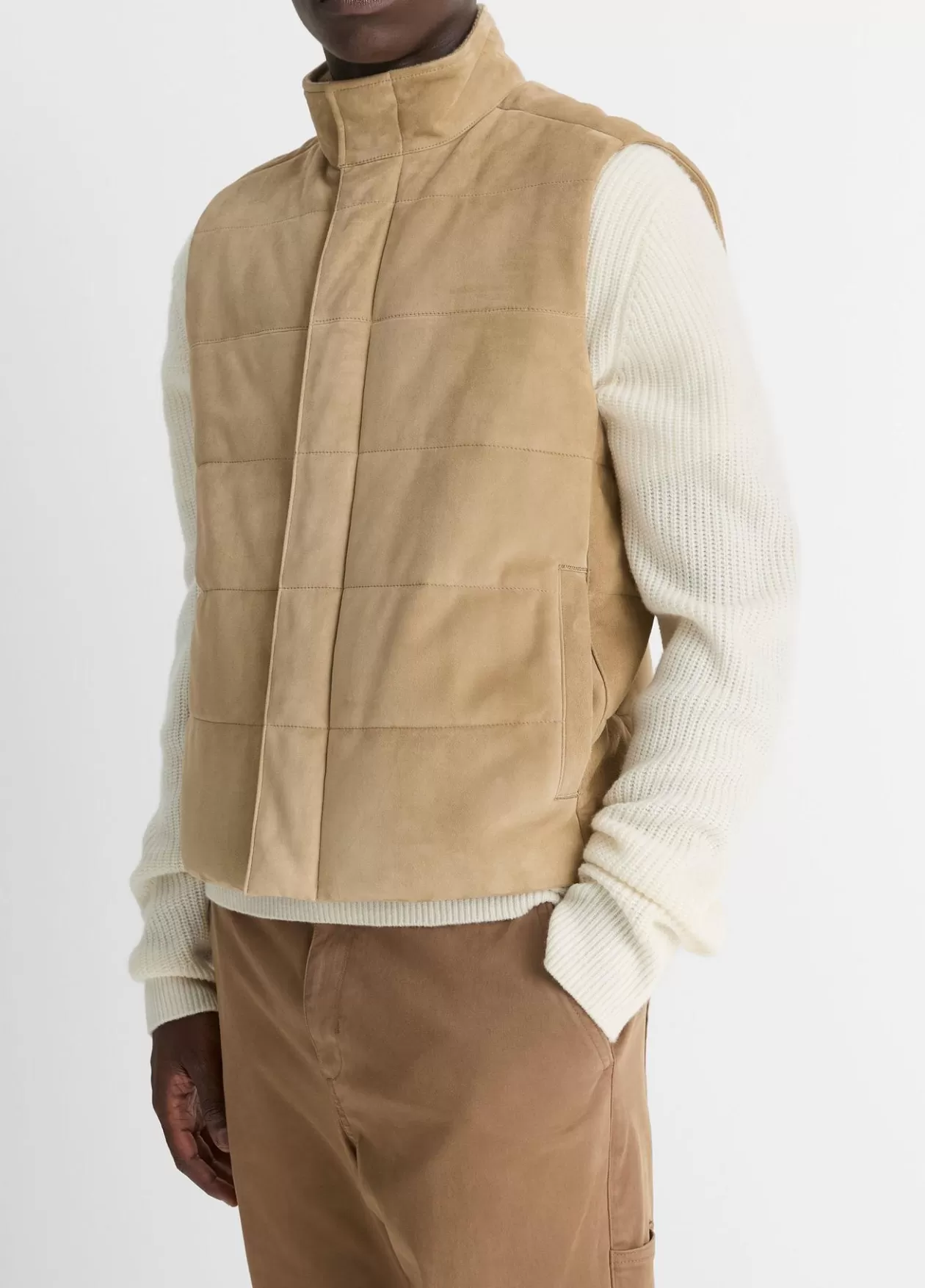 Product Details and CareThe epitome of refined utility, our insulated vest is crafted from buttery quilted suede and lin…
