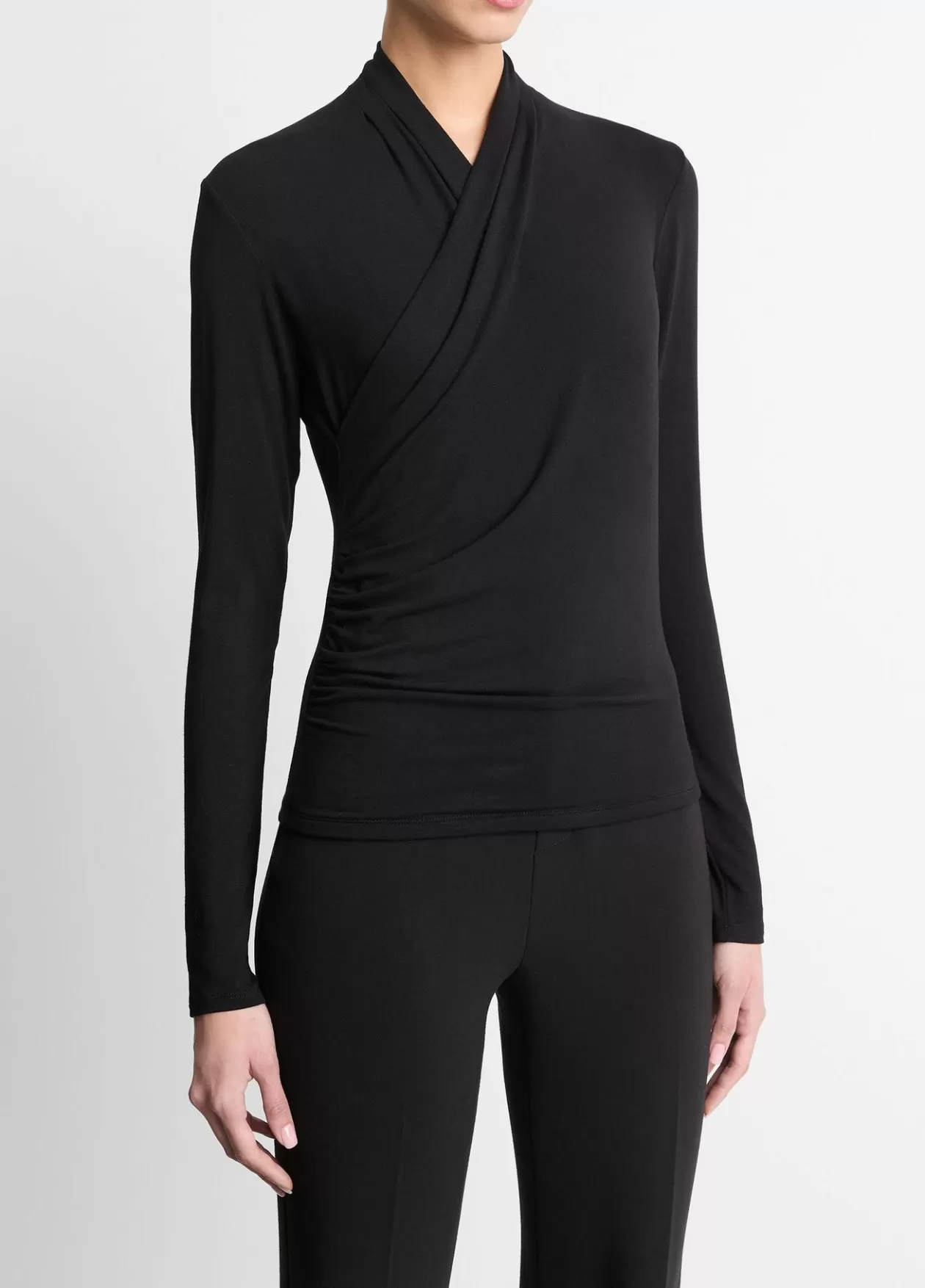 Product Details and CareDesigned with a fixed wrap front and light ruching at the side, this soft jersey long-sleeve top…