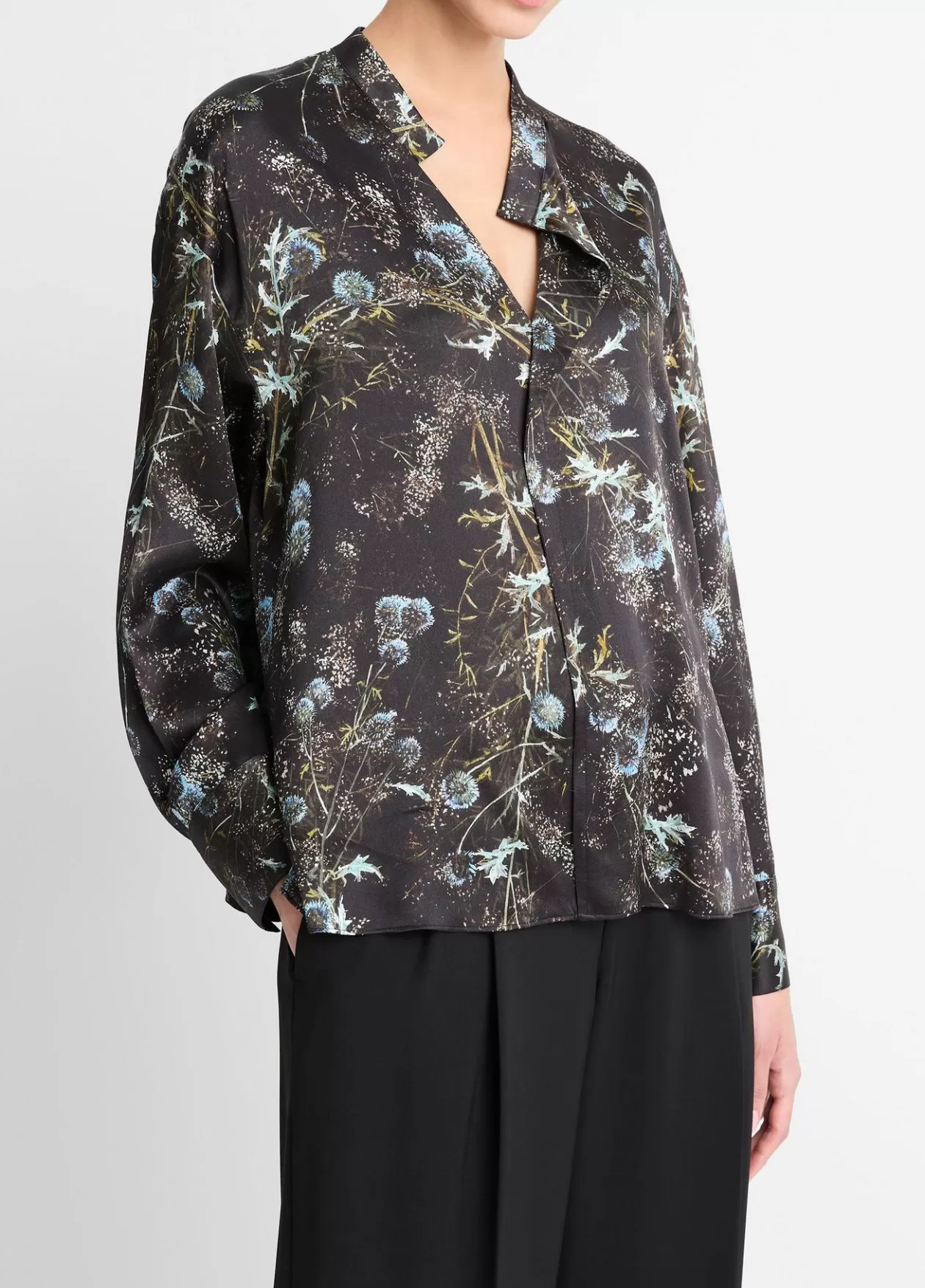 Product Details and CareCrafted from smooth silk satin in this season’s whimsical thistle motif, our long-sleeve blouse …