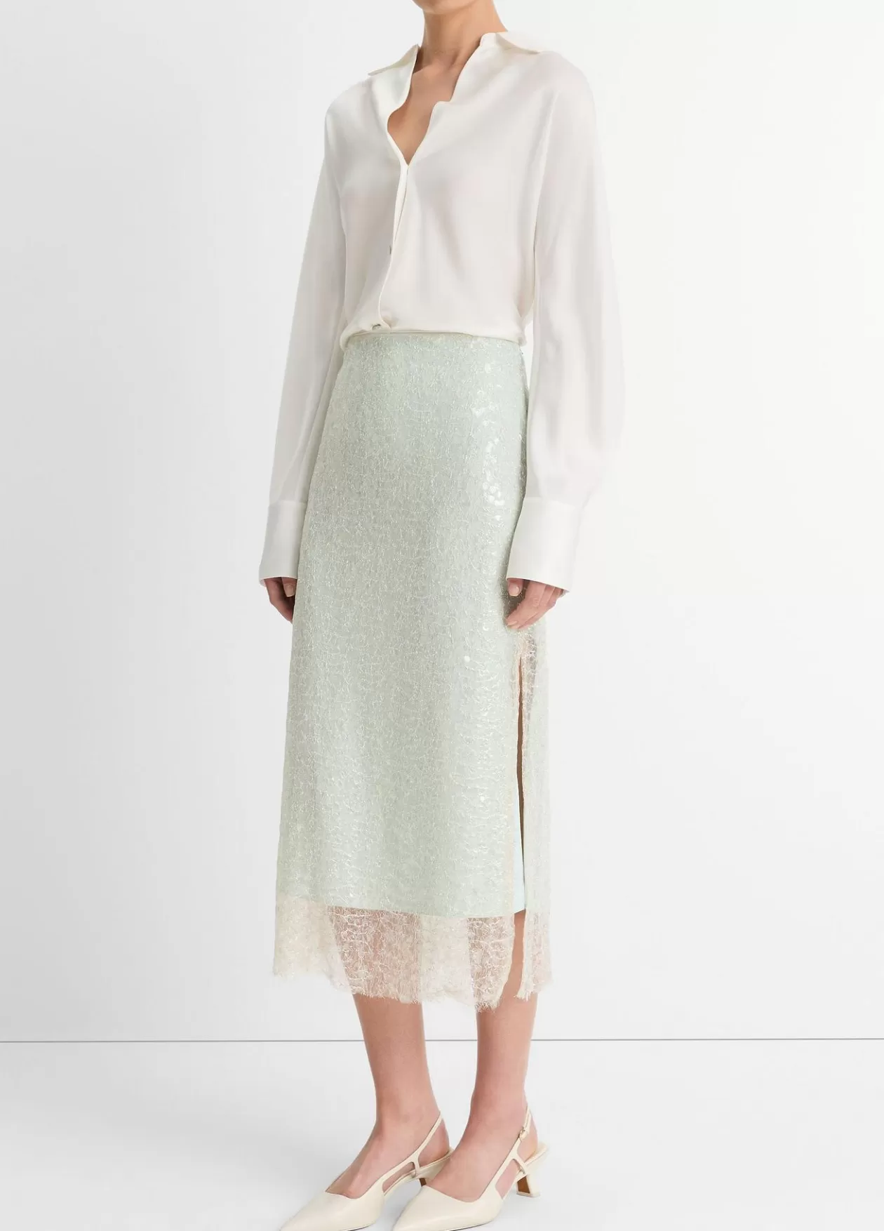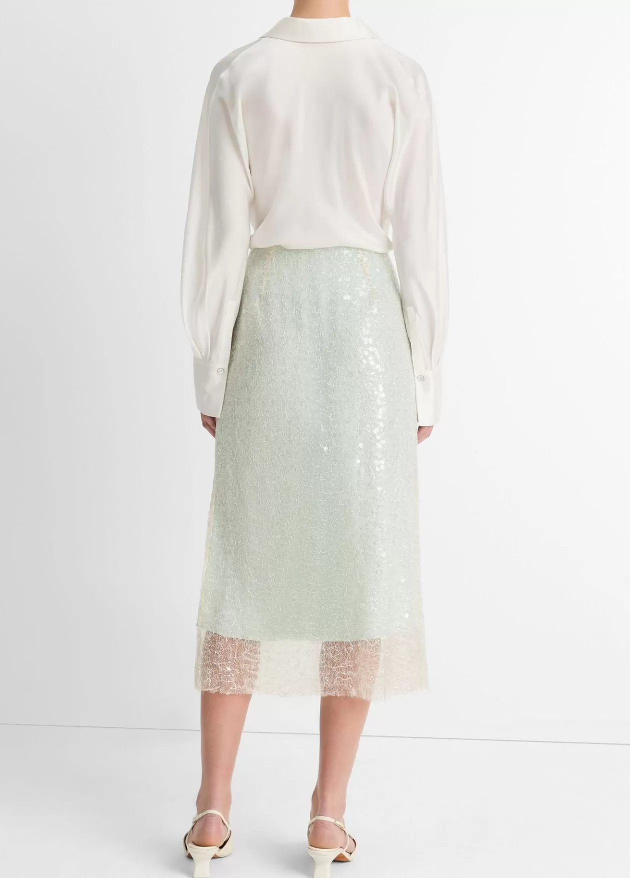 Product Details and CareTextured translucent sequins appliquéd with metallic thread create a glassy finish on this stra…